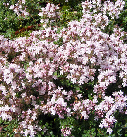 Nenáročná skalnička so sivo zelenými listami a ružovými kvetmi.