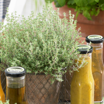 Zaujímavá vodná mäta so sviežimi zelenými listami a fialovými kvetmi.