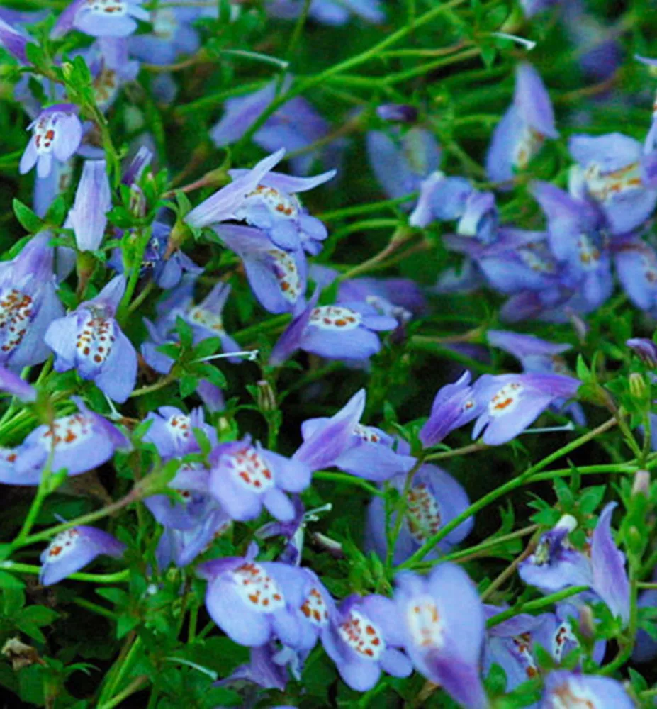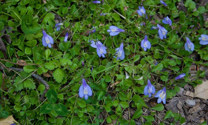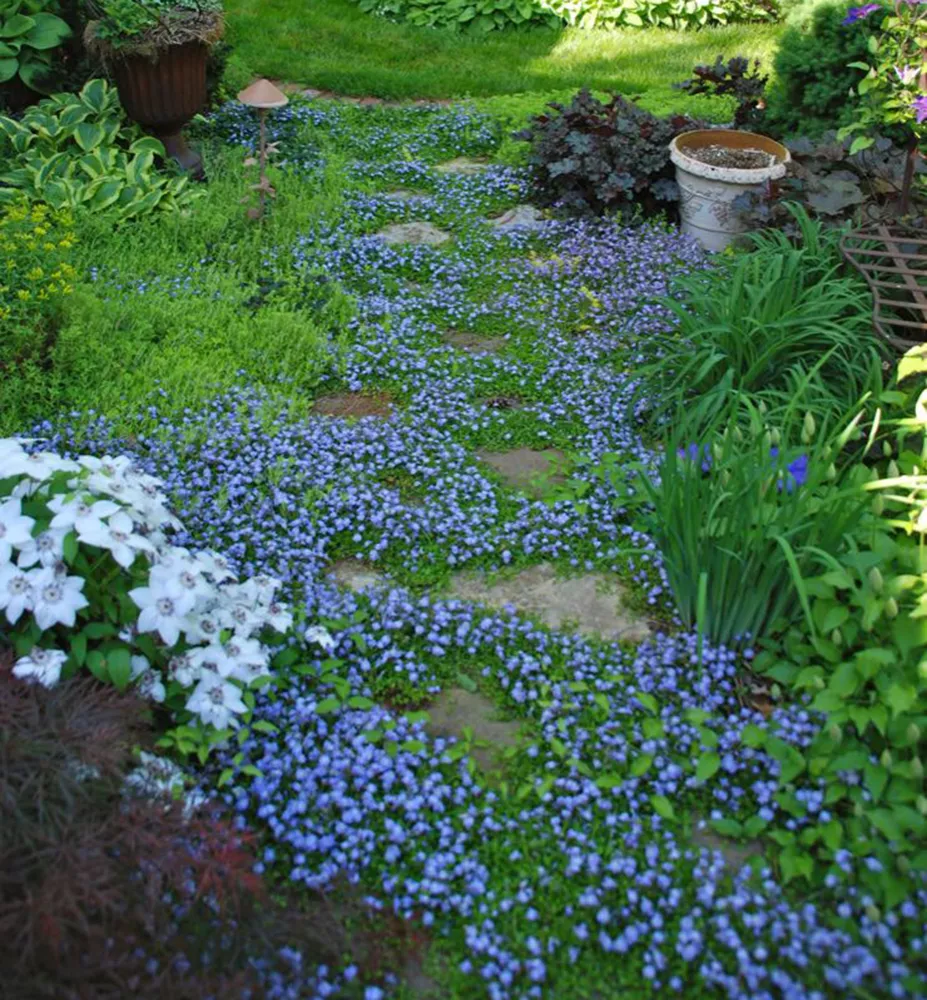 Rýchlo rastúca pôdopokryná trvalka s množstvom modrých kvetov.