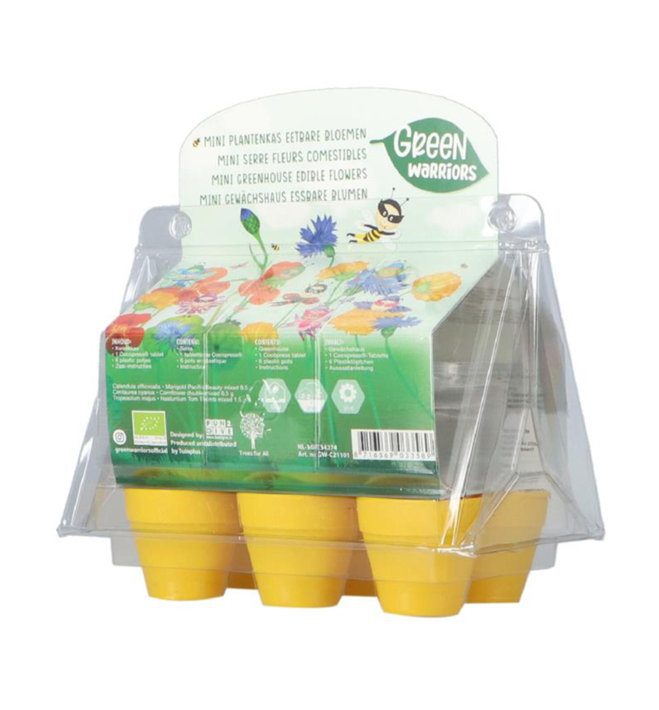 Charakteristika: Mini pestovateľský skleník na pestovanie bio jedlých kvetov. Kompletná sada skleníka so 6 plastovými kvetináčmi, zemnou tabletou, bio semenami jedlých kvetov nechtíka, kapucínky a nevädzy. Vytvorte si chutné dezerty a dozdobte ich prirodzenými, chutnými, jedlými kvetmi dopestovanými priamo u vás.