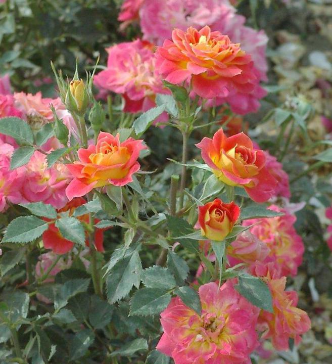 Bohato kvitnúca ruža s jasnými lososovo ružovými kvetmi rozžiari každú záhradu.