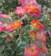 Mnohokvetá ruža s atraktívnymi poloplnými kvetmi ružovej farby s príjemnou vôňou.