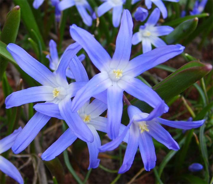 Veľmi skoro kvitnúca nízka modravka s hviezdicovitými kvetmi svetlomodrej farby.