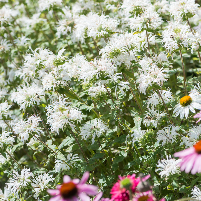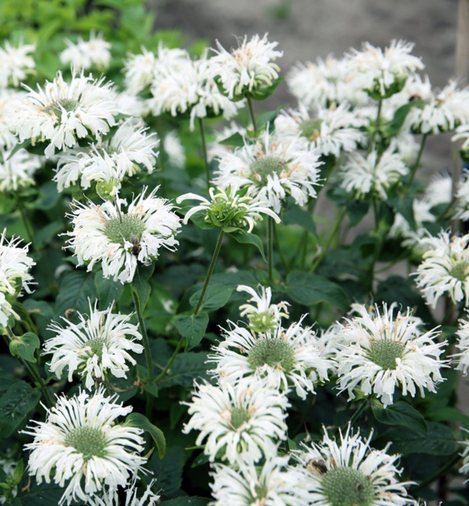 Charakteristika: Monarda podvojná ´BEE®BRIGHT´ sa vyznačuje jemnými bielymi kvetmi so strapatými okvetnými lístkami. Ak chcete do svojej záhrady prilákať motýle, včely a iný užitočný hmyz, monarda je na to ideálna. V kvete dorastá do výšky približne 70 cm. Kvitne počas celého leta až do jesene. Vyznačuje sa vyššou odolnosťou voči chorobám a plesni. Jej aromatické listy vyrastajú párovito, majú jemnú vôňu mäty a môžu sa použiť na prípravu čajov.