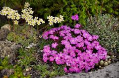 Extrémne mrazuodolný pôdopokryvný nátržník s bielymi kvetmi.
