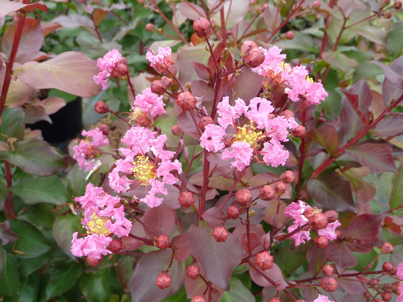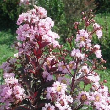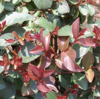 Mrazuvzdorná okrasná drevina s vínovočervenými listami a voňavými páperovitými kvetmi.