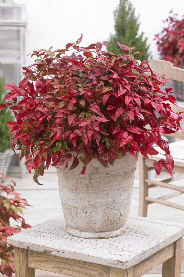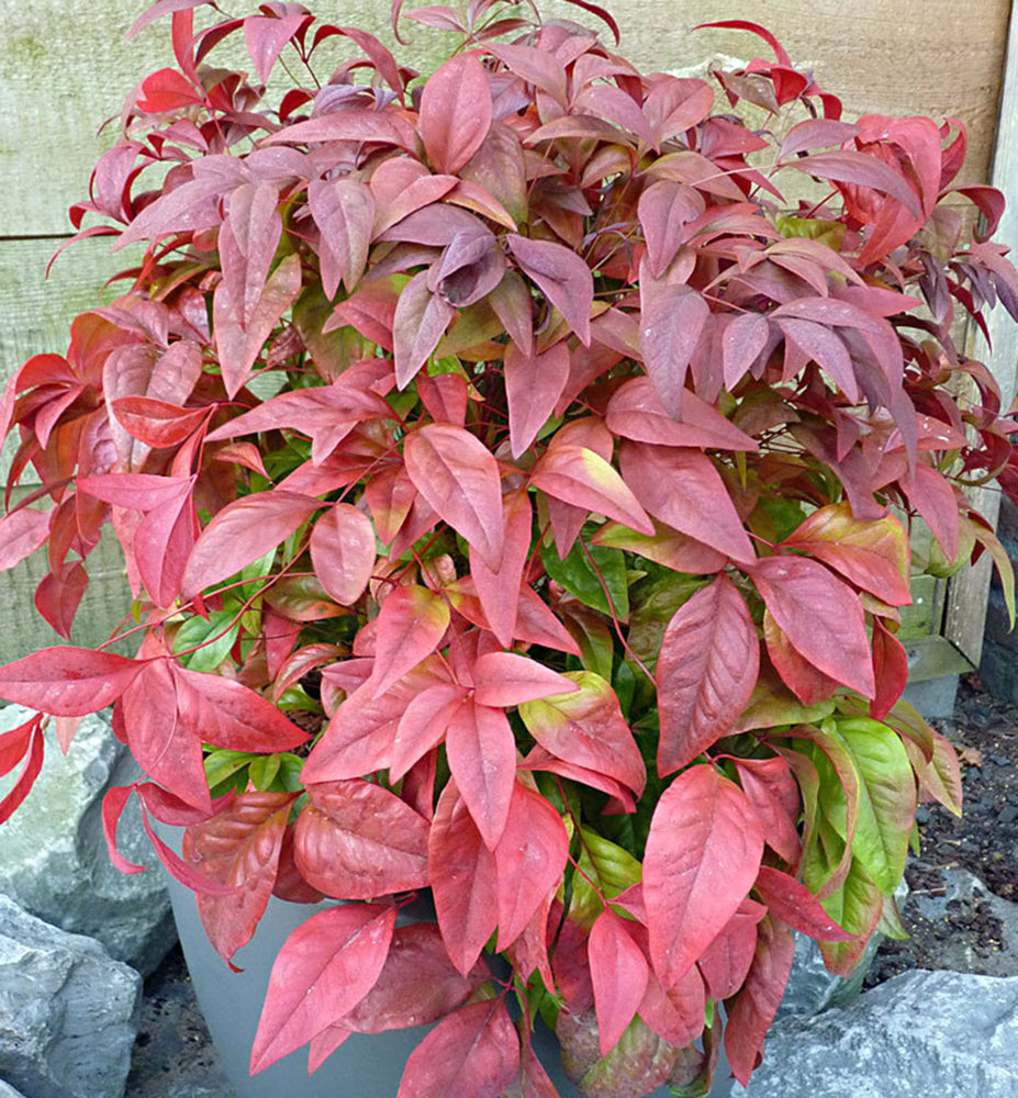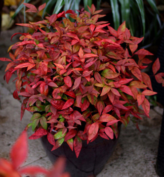 Zakrslý dráč s výnimočne dekoratívnymi listami sfarbenými do červena.