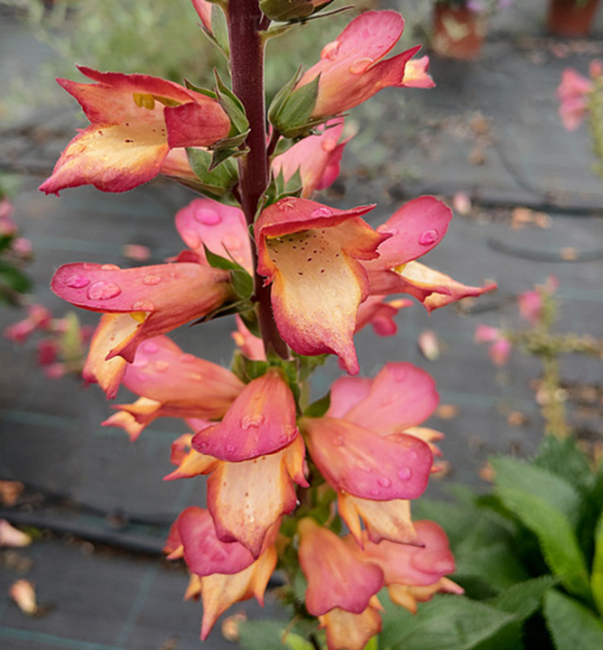 Charakteristika: Náprstník ´FALCON FIRE´ je vysoká trvalka, ktorá vyniká atraktívnym kvetom sýtoružovej farby s mangovo oranžovým vnútrom. Kvety rastú na dlhých pevných stonkách do výšky 60-70 cm a majú zvončekovitý tvar. Bohato kvitne počas celého leta až do prvých mrazov. Listy má veľké zelené, oválne až kopijovitého tvaru. Svojimi kvetmi láka motýle a včely.