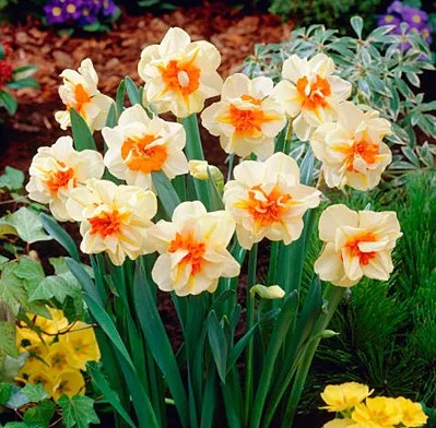 NOVINKA! Nádherný dvojfarebný narcis s netradičnými plnými kvetmi žlto oranžovej farby.