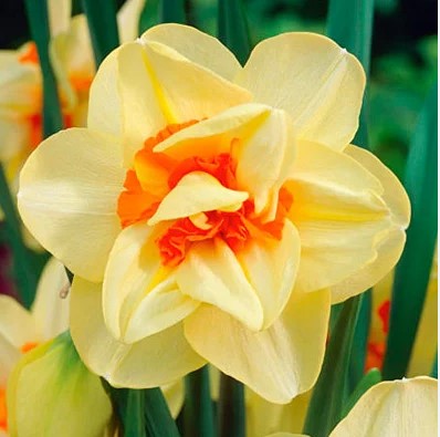 Charakteristika: Narcis ´DOUBLE FASHION´ je zaujímavý dvojfarebný kultivar, ktorý od marca do apríla vytvára množstvo plných kvetov. Okvetné lístky sú jemne zvlnené, krémovožltej farby, doplnené výraznými oranžovými lupeňmi uprostred. Tento atraktívny kultivar dorastá do výšky 30 - 40 cm a je vhodný aj na rezanie do kytíc. Svojou jemnou ľahkou vôňou je lákadlom pre včely a motýle.