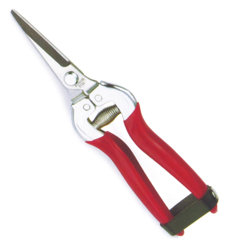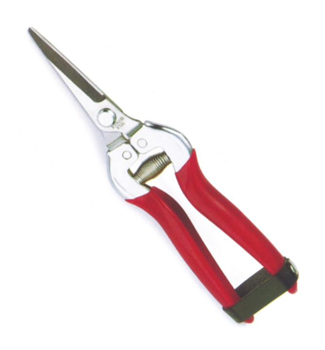 Záhradné nožnice s rovným nerezovým ostrím, vhodné hlavne na zber hrozna.