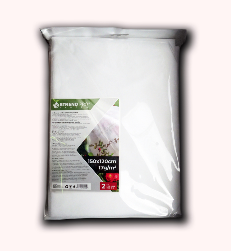 Charakteristika: Ochranný návlek z netkanej textílie poskytuje ochranu pred nízkymi teplotami a chráni pred silným vetrom a krupobitím. Je vhodný pre rôzne druhy kvetov, rastlín, kríkov a stromčekov. Prepúšťa vzduch, vodu a slnko, vďaka čomu ho možno použiť aj ako ochranu pred vtáctvom, hmyzom a inými škodcami, najmä v období dozrievania plodov. Farba: biela. Rozmery: 150x120 cm. Počet ks v balení: 2.