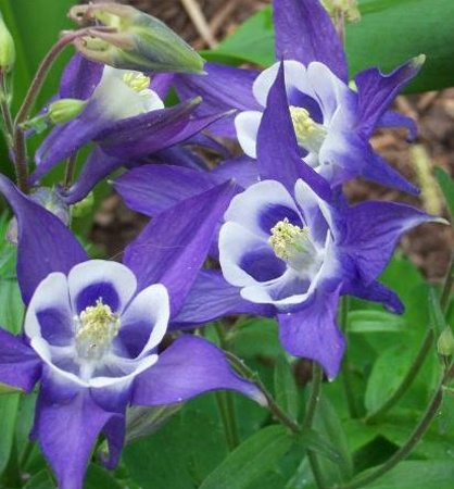Kompaktný trpasličí orlíček do skalky s modrobielymi vejárovitými kvetmi.