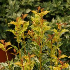 Zakrslý dráč s výnimočne dekoratívnymi listami sfarbenými do červena.
