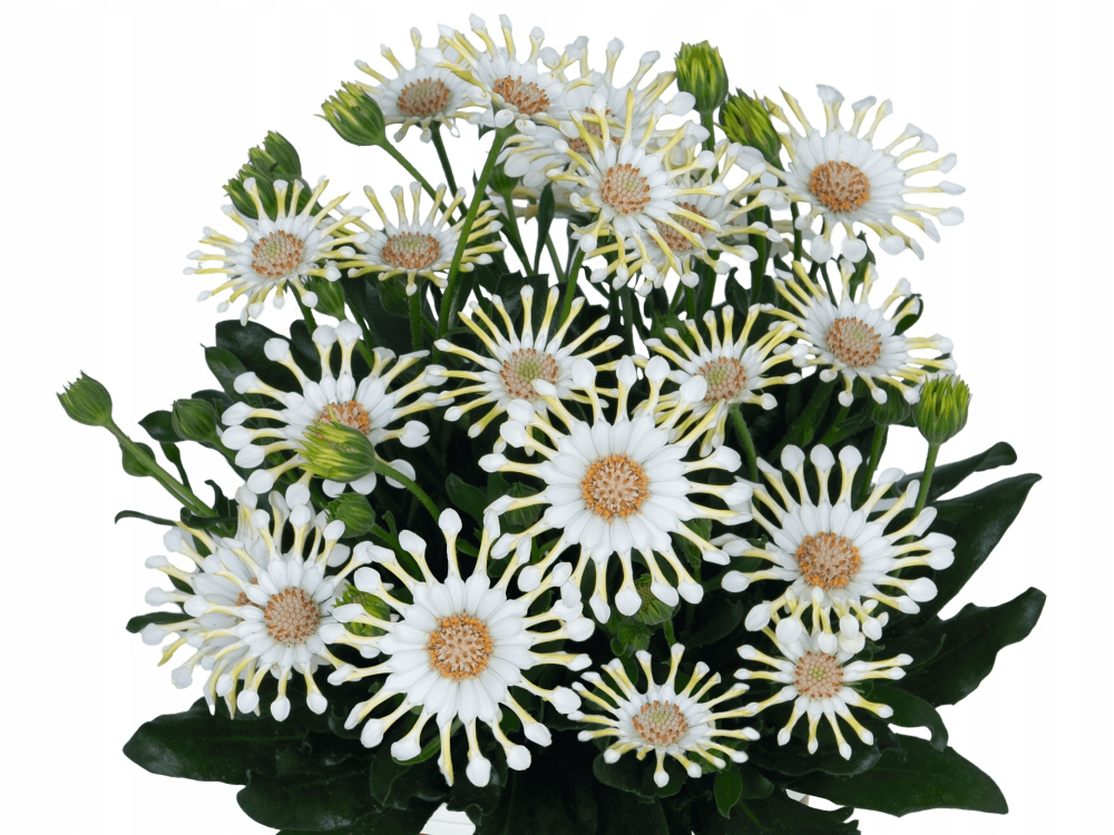 Charakteristika: Osteospermum ´MARGARITA® CREME SPOON´ zaujme na prvý pohľad netradičným tvarom kvetov. Atraktívne zvlnené lupienky majú svetlokrémovú až jemne žltkastú farbu a na koncoch sú charakteristicky rozšírené do tvaru lyžičky, čo rastline dodáva originálny a elegantný vzhľad. Stred v odtieňoch svetlohnedej zvýrazňuje celkový efekt kvetu. Listy sú lesklé, majú tmavozelenú farbu a nepravidelný okraj.