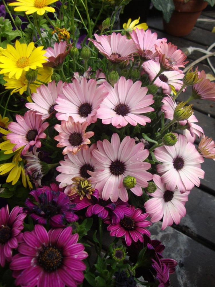 Trpasličia odroda s purpurovoružovými kvetmi a tmavými listami.