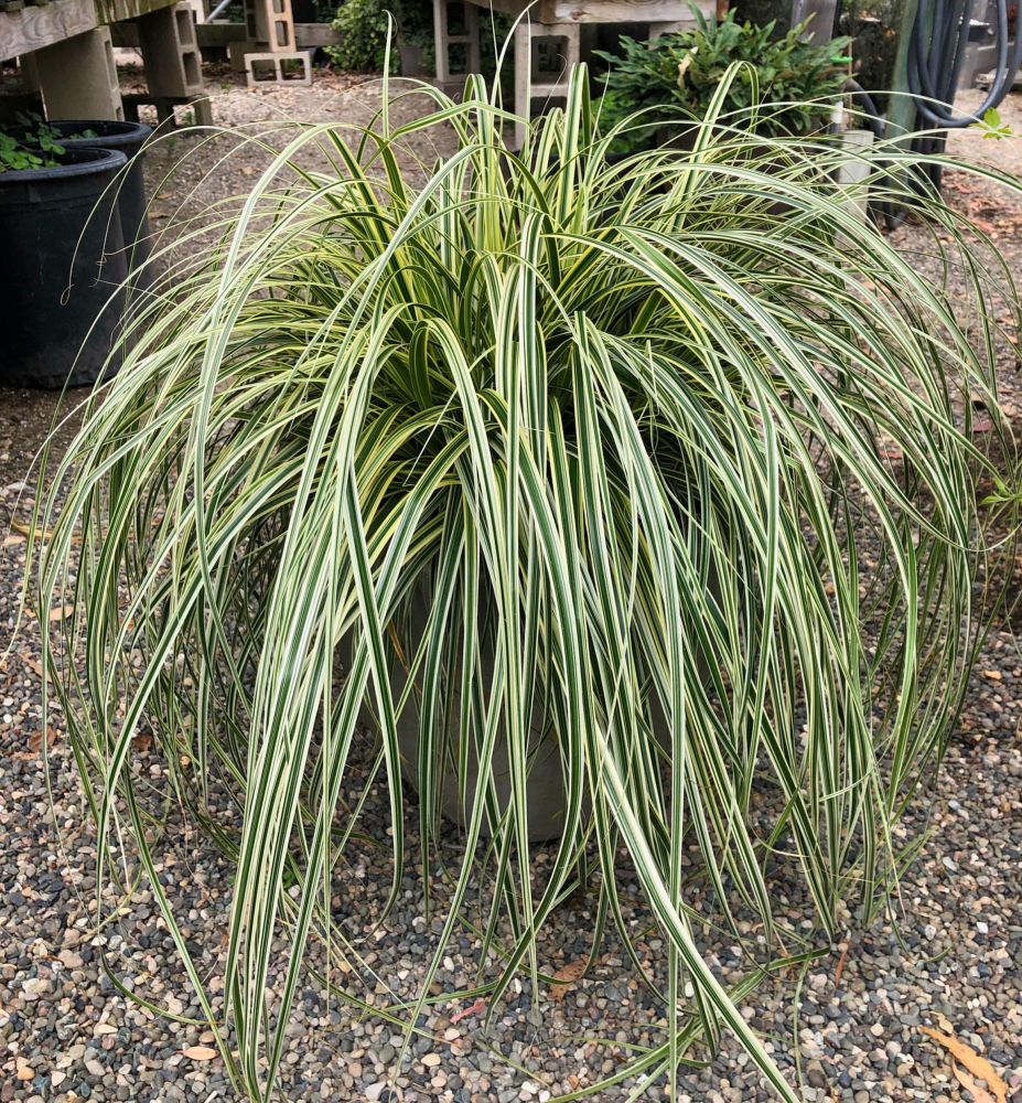 Charakteristika: Ostrica ´Ribbon Falls´ je pôvodom z Japonska a je to vždyzelená dekoratívna tráva, ktorá nájde svoje využitie naozaj všade. Najviac však zaujme v závesnom črepníku, kde vyniknú jej previsnuté panašované listy pripomínajúce stuhu. Listy sú zelené so striebornobielym panašovaním po okrajoch. Na jar kvitne svetlohnedými kvetmi. Ostrica je vhodná aj na výsadbu okrajov záhona, či do skalky. Efektne vynikne aj v skupinovej výsadbe. Dorastá do výšky 30-40 cm.