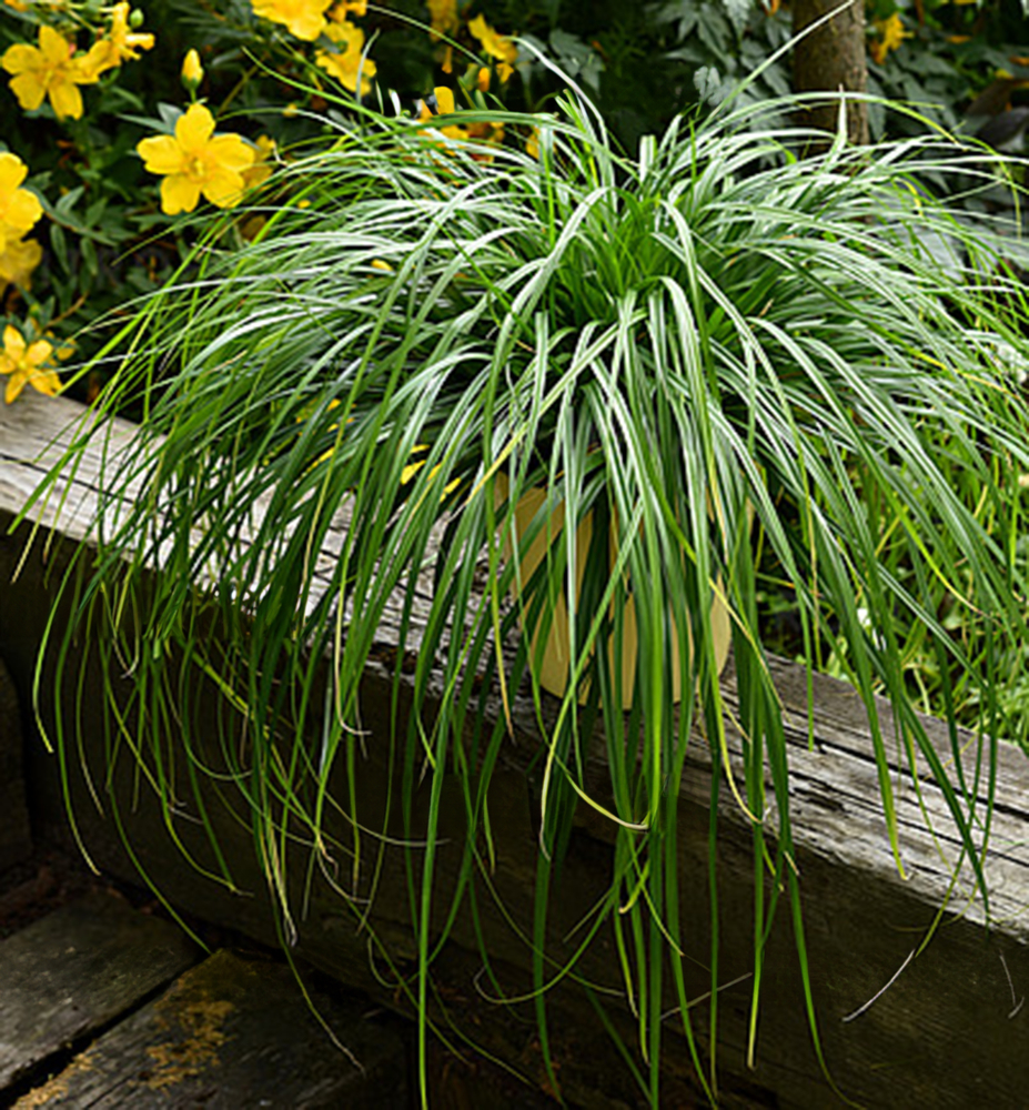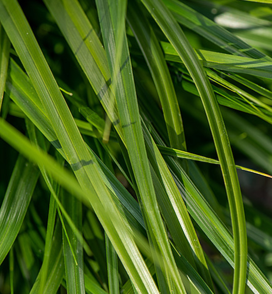 Vyhľadávaná stredne vysoká okrasná tráva s prevísajúcimi zelenými listami.