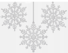 Charakteristika: Súprava ozdôb slúži na slávnostné ozdobenie vianočného stromčeka. Obsahuje 6 ks snehových vločiek s rozmerom 12 cm. Farba ozdôb je biela. Sú vyrobené z plastu.