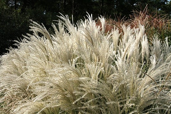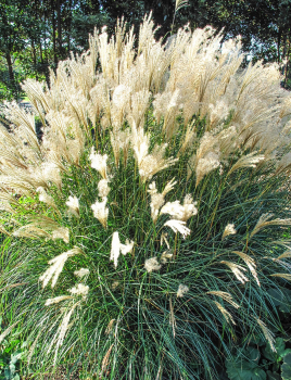 Okrasná tráva tvoriaca vzdušné trsy elegantne previsnutých panašovaných listov.