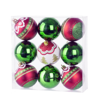 GULE MAGICHOME VIANOCE, 9 ks, červeno-zelené s dekoráciou, 6 cm