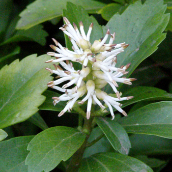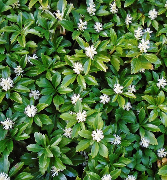 Charakteristika: Pachysandra vrcholová je atraktívna vždyzelená trvalka, ktorej sa mimoriadne darí na polotienistých až tienistých miestach. Vyniká dekoratívnymi lesklými listami so strihaným okrajom. Stonky rastú vzpriamene. Rastie pomaly do výšky 25-30 cm a šírky 40-50 cm. Na jar kvitne bielymi kvetmi. Pachysandra je mimoriadne obľúbená ako náhrada trávnikov.