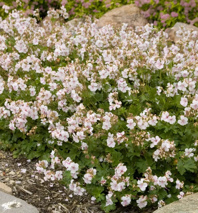Nenáročná pôdopokryvná trvalka so záplavou jemne ružových kvetov.