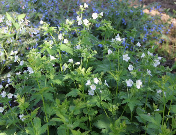 Vyšší pakost s bielymi kvetmi, vhodný do vidieckych trvalkových záhrad.