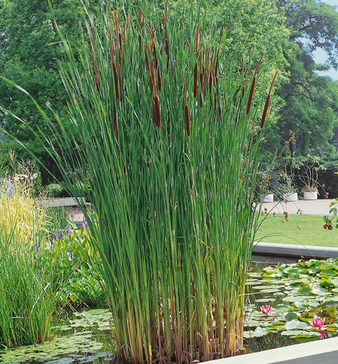 Obľúbená pálka so širokými tmavozelenými listami a hnedými klasovitými kvetmi.