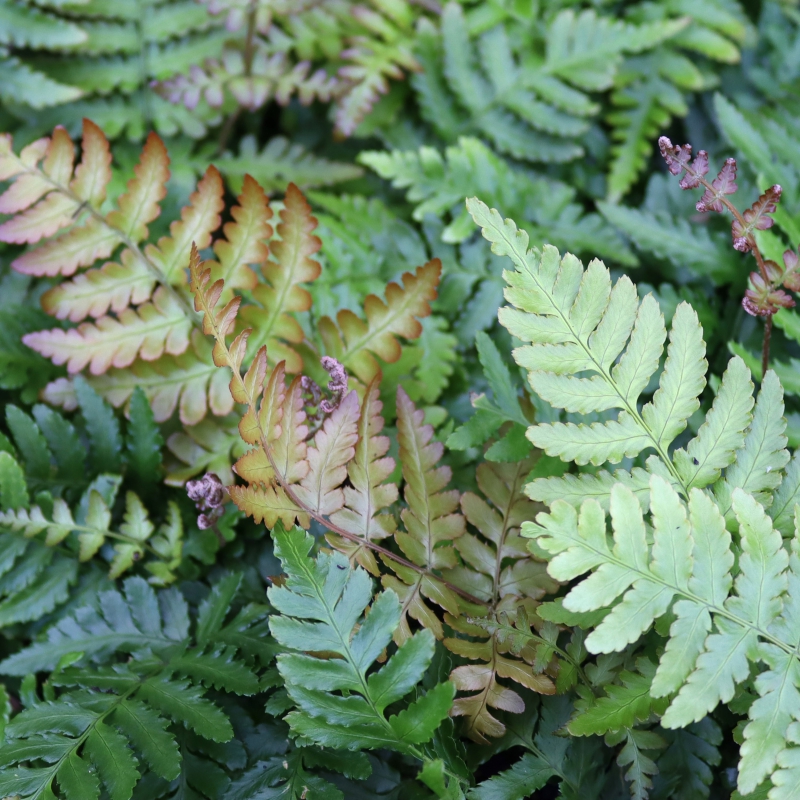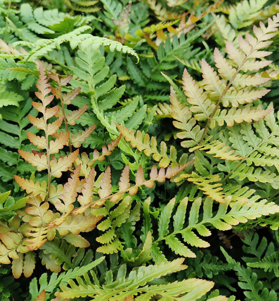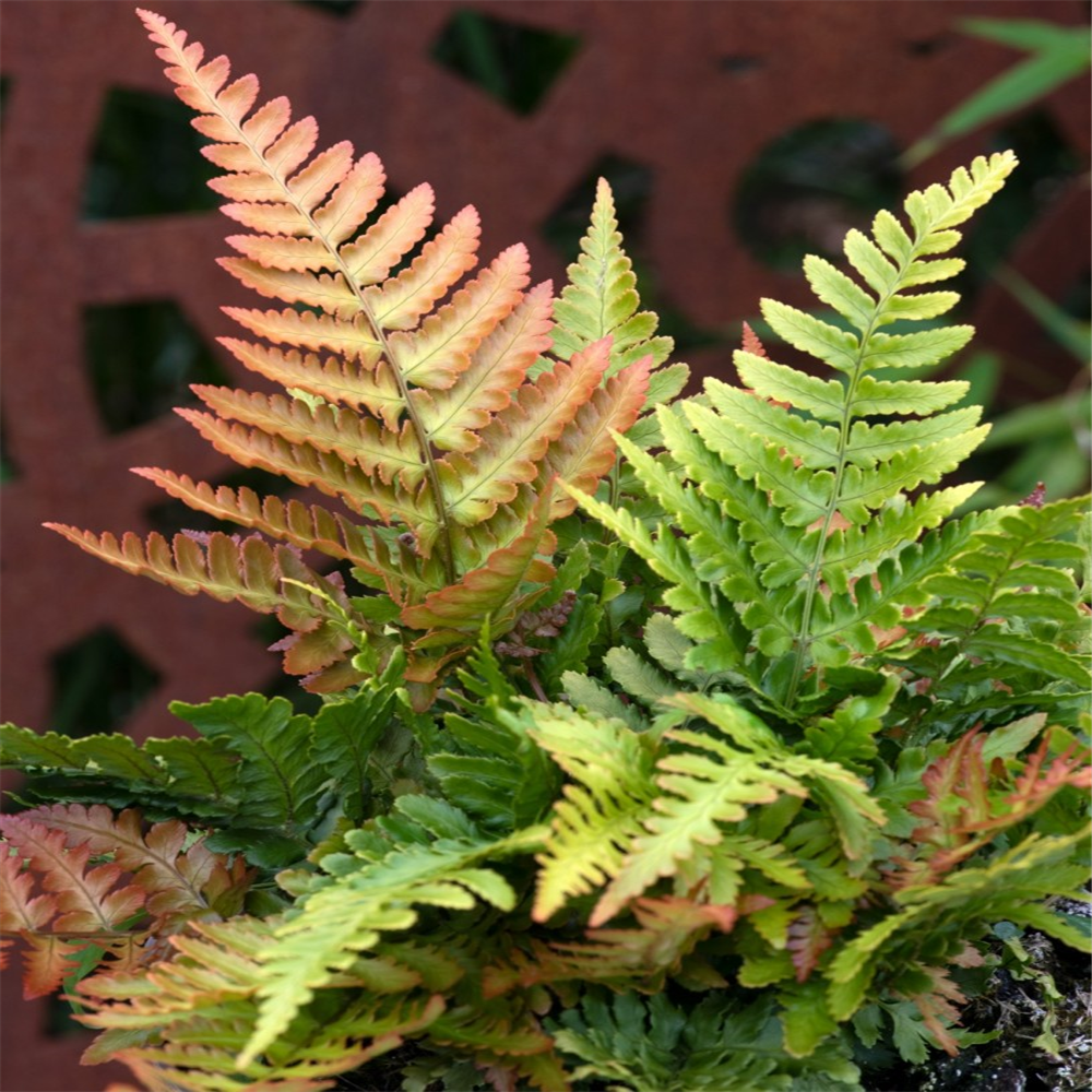Pútavá pestrofarebná papraď s červeno-zelenými listami a kompaktným vzrastom.