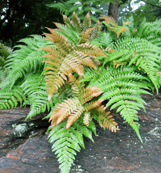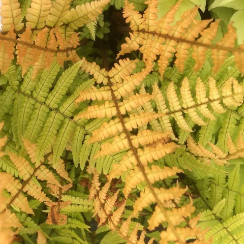 Charakteristika: Papraď ´JURASSIC GOLD´ je víťazka ocenenia Najlepšia nová rastlina za rok 2019. Nové listy sa rozvíjajú v koralovoružovom odtieni, postupne prechádzajú do bronzova, žltooranžova až nakoniec zosatávajú sýtozelené. Listy sú vzpriamené, ohýbajú sa až po určitom čase v závislosti od veľkosti. Dorastá do výšky približne 60 cm. Papraď je ideálnym doplnkom na oživenie tienistých a vlhších miest pod stromami a vyššími krami.
