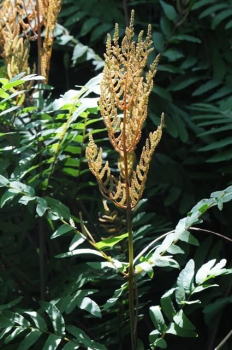 Charakteristika: Papraďovitá trvalka ´OSMUNDA KRÁĽOVSKÁ´ je vysoká opadavá trsovitá papraď pôvodom z Írska. Nové listy sú sfarbené do medených odtieňov a v lete upútajú sviežou zelenou farbou. Počas jesene nadobúdajú nádherné odtiene bronzovej až hrdzavej farby. Listy sú vzpriamené a dorastujú do výšky až 120 cm. Metlinaté výtrusnice sa nesú na kratších listoch v strede trsu a dozrievaním získavajú teplý hnedý odtieň. Papraď je ideálnym doplnkom na oživenie tienistých a vlhších miest pod stromami a vyššími krami. Rastlina je vysoko mrazuvzdorná, patrí do skupiny tzv. živých fosílií.