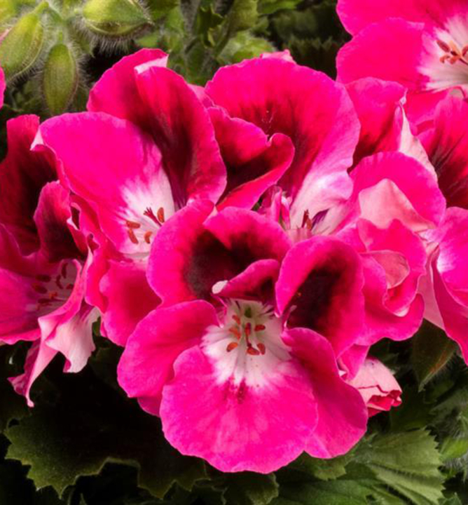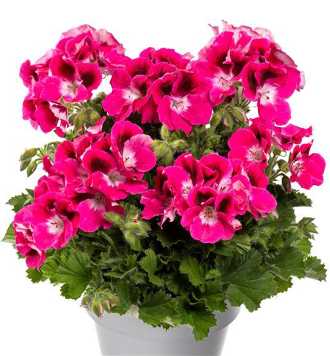 Charakteristika: Veľkokvetá pelargónia ´ARISTO®MAGENTA´ kvitne počas celého roka neprehliadnuteľnými kvetmi magentovej farby. Stred kvetu tvorí kontrastná biela farba. Unikátny vzhľad uzatvára vínovočervená kresba na vrchnom okvetnom lístku. Veľmi dobre sa kombinuje s inými kultivarmi anglických pelargónií.