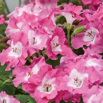 Obľúbený rebríček so žiarivými ružovočervenými kvetmi s bielym očkom.