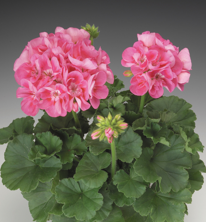 Neprehliadnuteľný plnokvetý ibištek s výraznými ružovočervenými kvetmi.