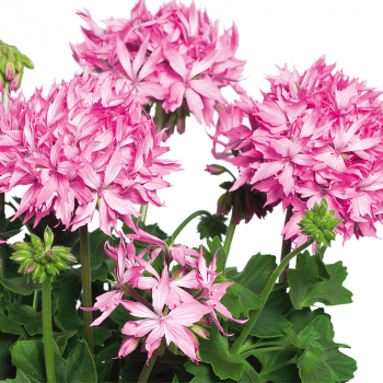 Nová odroda s atraktívnymi bielymi kvetmi a kontrastným sýtoružovým sfarbením.