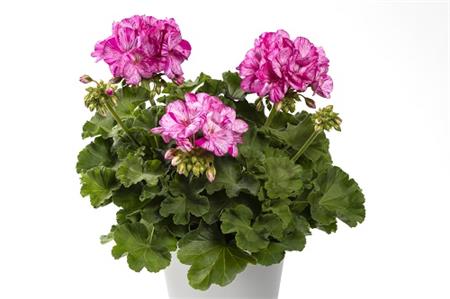 Charakteristika: Netradičná pelargónia ´MOSAIC® VIOLET´ s unikátnymi bielymi kvetmi s výrazným melírovaním ružovofialovej farby. Táto letnička výborne vyplní priestor v sezónnych výsadbách.