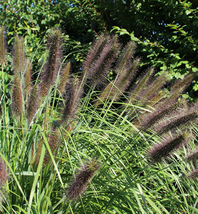 Žiadaná okrasná tráva so zelenými listami, ktoré sa na jeseň prefarbujú do fialova.