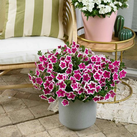 Charakteristika: Petúnia ´CAPELLA® RIM FUCHSIA´ je atraktívna odroda s pútavými fuchsiovoružovými kvetmi lemovanými širokým, čisto bielym okrajom. Objavujú sa skoro a intenzívne počas celej sezóny, čo z tejto odrody robí ideálnu voľbu pre nádoby, závesné koše i záhony.