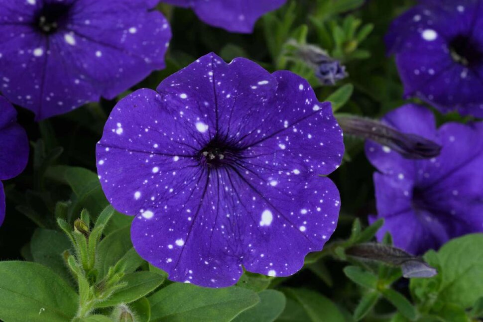 Charakteristika: Táto neprehliadnuteľná odroda ´SPLASHDANCE® BOLERO BLUE´ pripomína veľkými kvetmi nočnú oblohu posiatu hviezdami. Ich tmavofialová farba je dozdobená kontrastnými bielymi bodkami, ktoré majú nepravideľný tvar. Každý kvet je vďaka tomuto sfarbeniu unikátny. Petúnia je vhodná na výsadbu do závesných črepníkov, kde vytvára efektné mierne previsy.