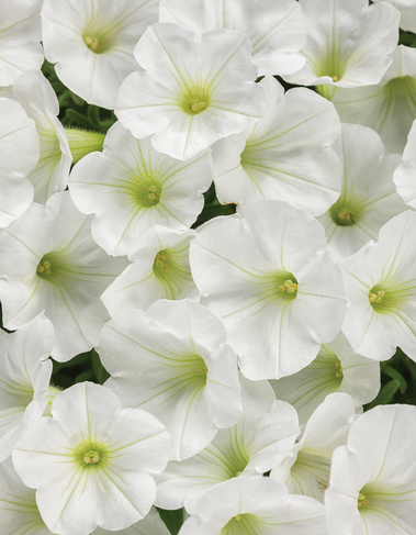 Charakteristika: Petúnia ´MINI VISTA WHITE´ kvitne množstvom snehovo bielych kvetov, ktoré sa ukazujú v plnej kráse od apríla až do prvých mrazov. Listy sú malé, oválne, sviežej zelenej farby.