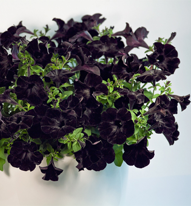 Charakteristika: Čierne kvety kultivaru ´CRAZYTUNIA® BLACK MAMBA´ v črepníkoch pôsobia veľmi moderne a exoticky. Kvety majú zamatový povrch a na slnku získavajú fialové odlesky.