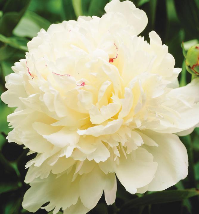 Charakteristika: Elegantná pivónia sa vyznačuje množstvom veľkých kvetov maslovej farby. Okvetné lupienky v strede kvetu môžu mať jemné ružové sfarbenie. Táto pivónia je vhodná aj k rezu a tým prevonia aj váš domov. Kvety sú plné a môžu mať priemer 20 cm. Stonky sú vysoké 80 cm. Listy sú delené, zelené, na jeseň karmínovo červené a na zimu sa zaťahujú. Skoro na jar rašia vínovo-červené lístky.