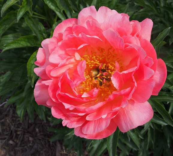 Kompaktná trvalka s pekne tvarovanými gaštanovými listami so žltozeleným okrajom.