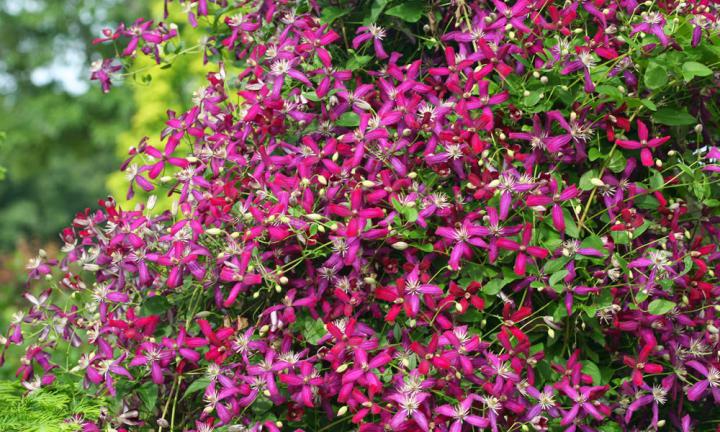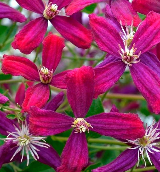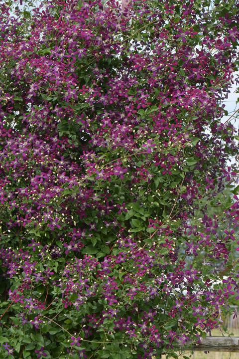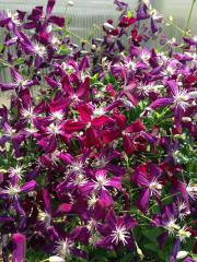 Mrazuvzdorná popínavá liana s výraznými voňavými fialovými súkvetiami.