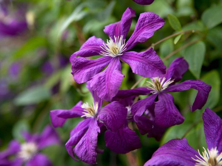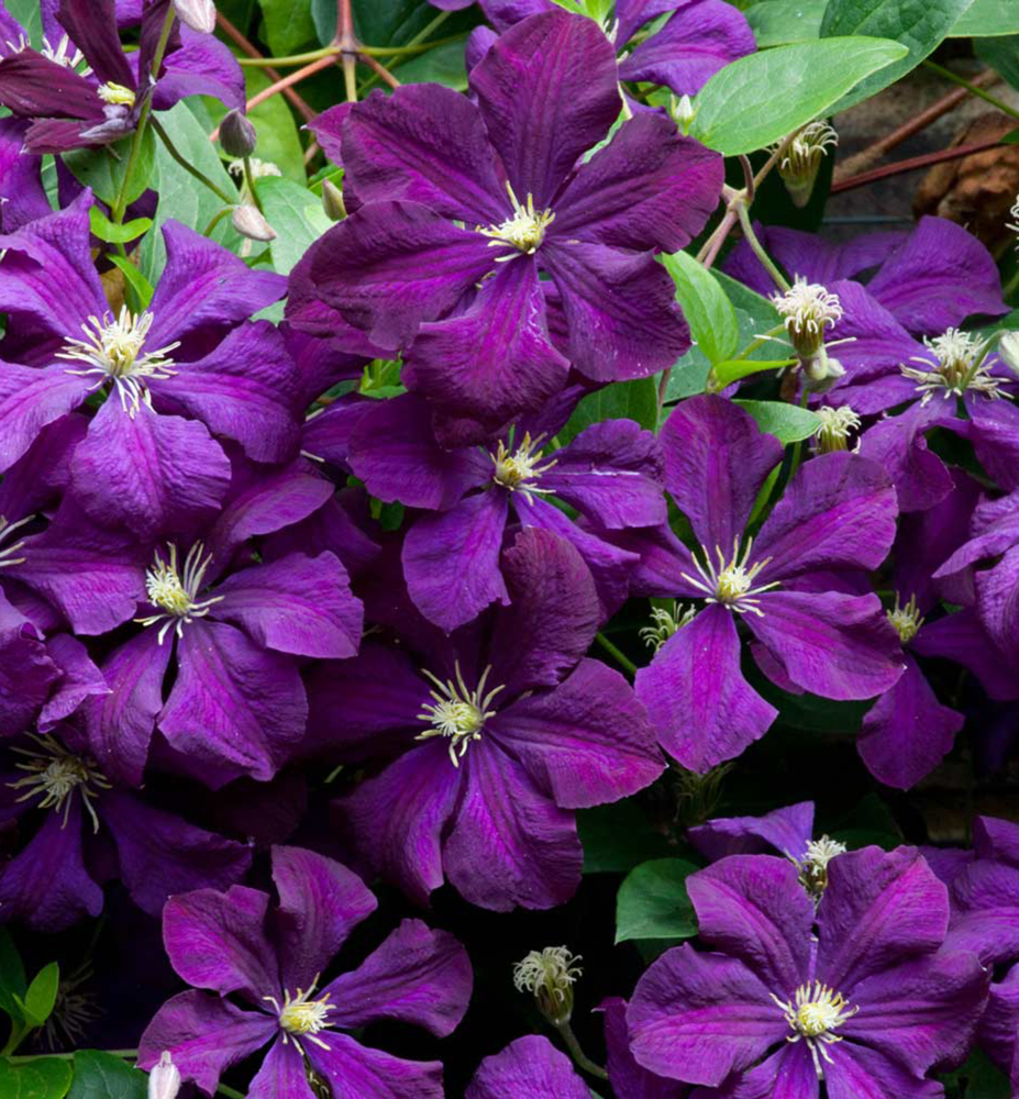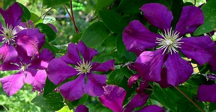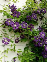 Mrazuvzdorná popínavá liana s výraznými voňavými fialovými súkvetiami.
