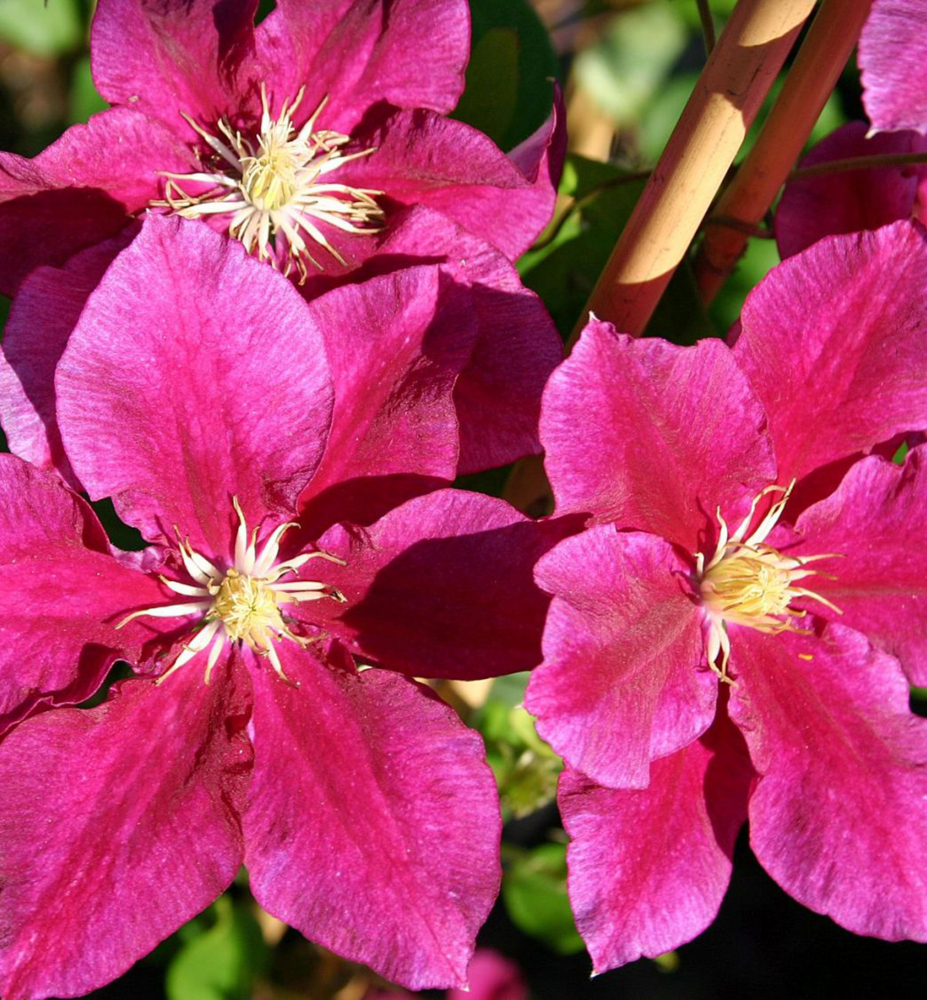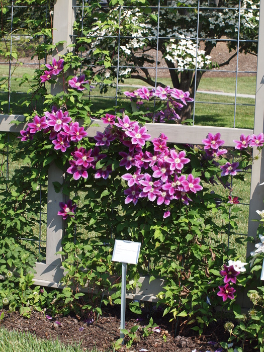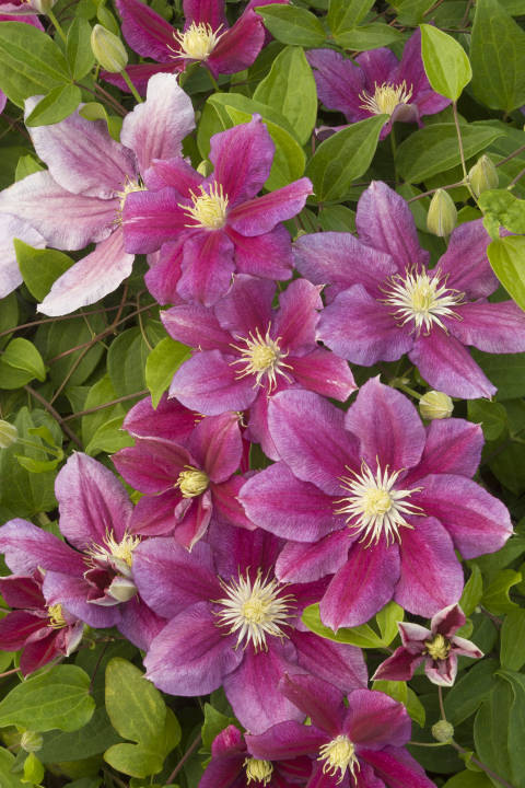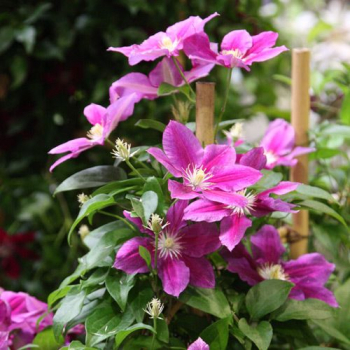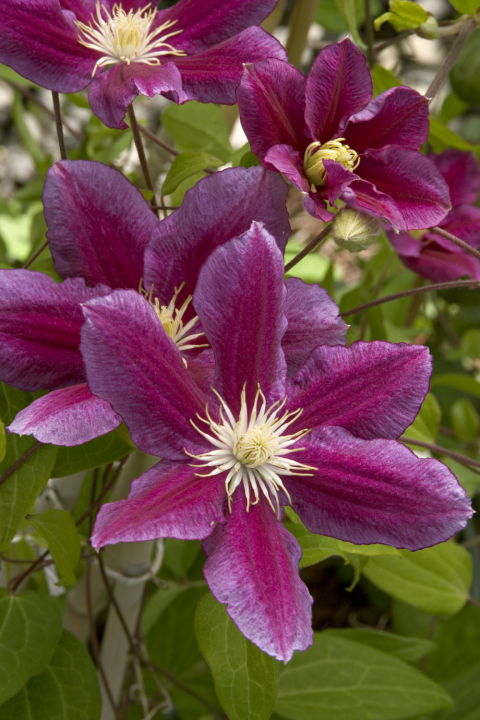 Mrazuvzdorná popínavá liana s výraznými voňavými fialovými súkvetiami.