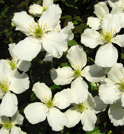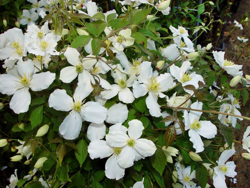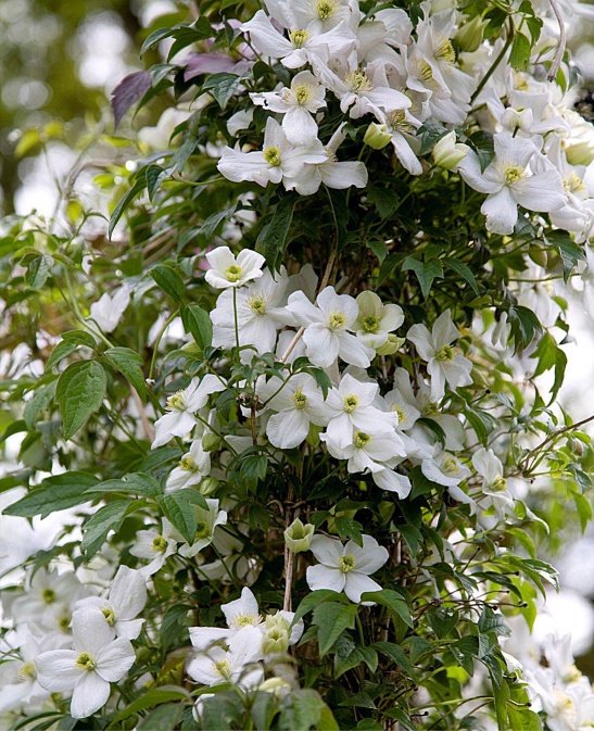 Mrazuvzdorná popínavá liana s výraznými voňavými fialovými súkvetiami.