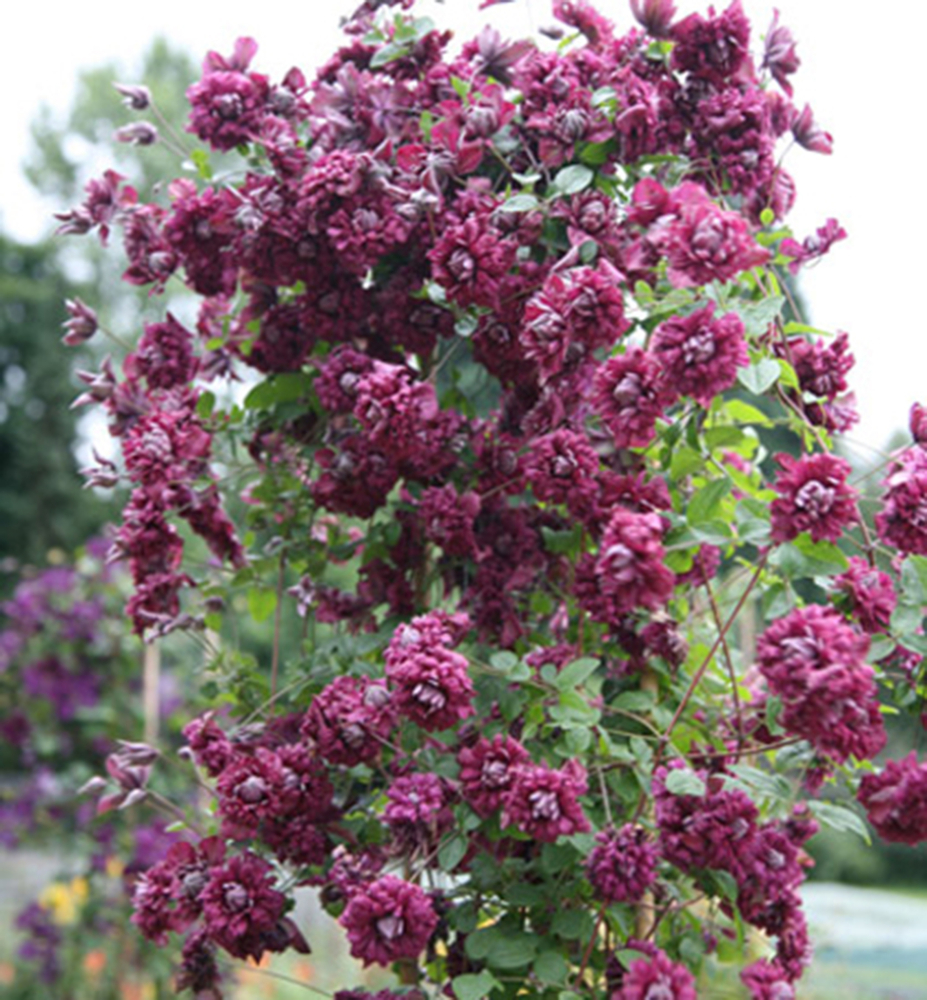 Mrazuvzdorná popínavá liana s výraznými voňavými fialovými súkvetiami.