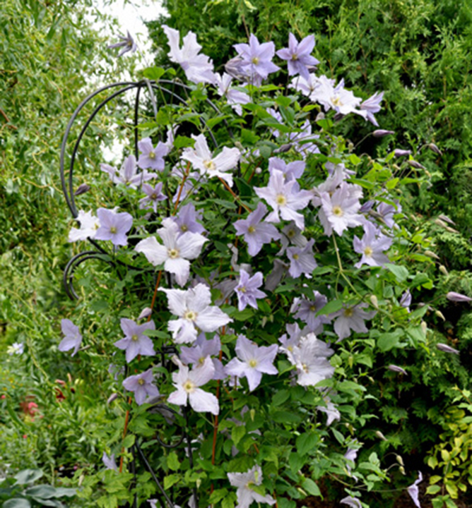 Charakteristika: Tento jemný a nežný plamienok s poľským rodokmeňom na prvý pohľad zaujme veľkými bledo fialovými kvetmi. Každý z nich má zvlnený čipkovaný okraj so svetlo žltými tyčinkami umiestnenými v strede kvetu čím púta pozornosť opeľovačov. Spoľahlivo kvitne celé leto a vytvára veľmi príjemný dojem na Vašej terase či altánku. Dorastá do veľkosti 2-3 m a pomerne rýchlo vytvorí jemnú kvetinovú stenu.